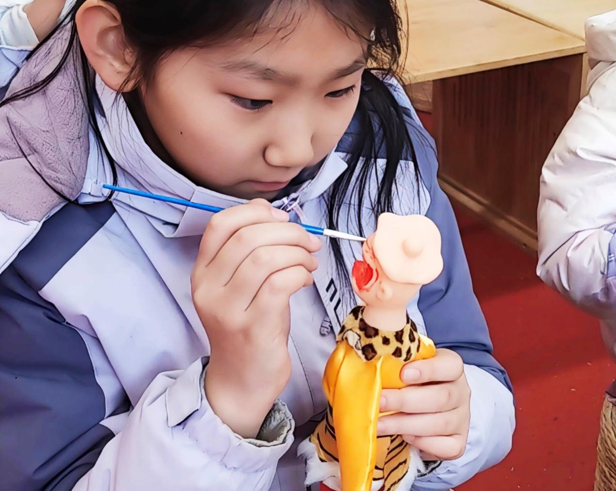 萊西木偶作為山東省級非物質(zhì)文化遺產(chǎn),屬北派杖頭木偶,歷史源遠流長,造型考究、臉譜經(jīng)典,是膠東民俗文化的鮮活載體。活動現(xiàn)場,非遺傳承人細致講解萊西木偶的歷史淵源、制作工藝與臉譜文化,手把手指導孩子們?yōu)槟九即┮隆⑸仙⒗L制傳統(tǒng)臉譜。孩子們滿懷好奇與專注,用畫筆勾勒眉眼、搭配色彩,為木偶修整精致衣飾,一件件獨一無二的小木偶在稚嫩雙手中誕生。歡聲笑語間,傳統(tǒng)技藝與童真創(chuàng)意相融,非遺文化在體驗中得到生動傳承。