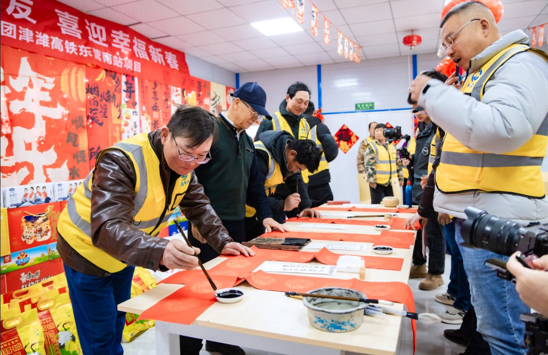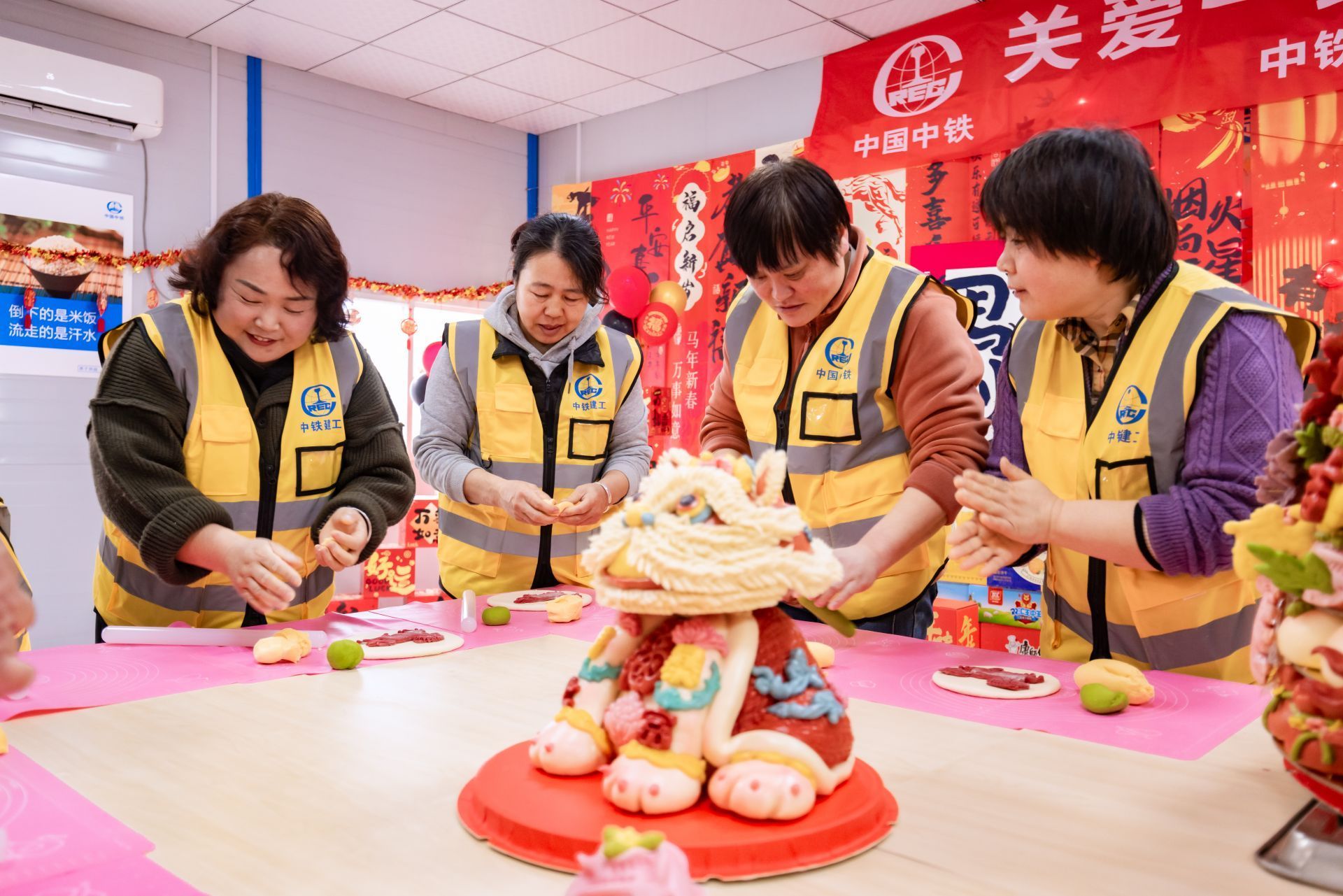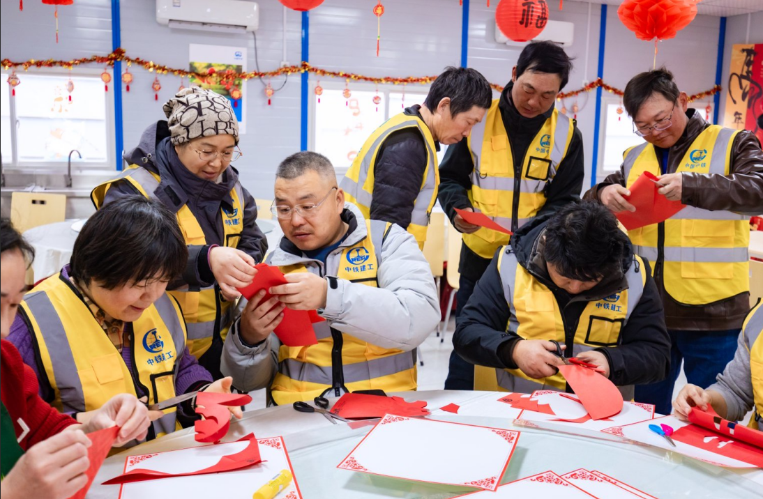 寫春聯、剪窗花、做花饃、包餃子,2月14日,中鐵建工集團津濰高鐵東營南站項目部縈繞著濃厚的春節氣息,來自河南、江蘇、安徽等地方的工友齊聚一堂,項目周邊熱心村民在工地上起灶,給工友們制作“愛心年糕”“祝福花饃”,項目部還為大家準備了豐盛的飯菜,以年俗味十足的“文化大餐”傳遞節日祝福,讓大家真切感受到來自齊魯大地的溫暖。
